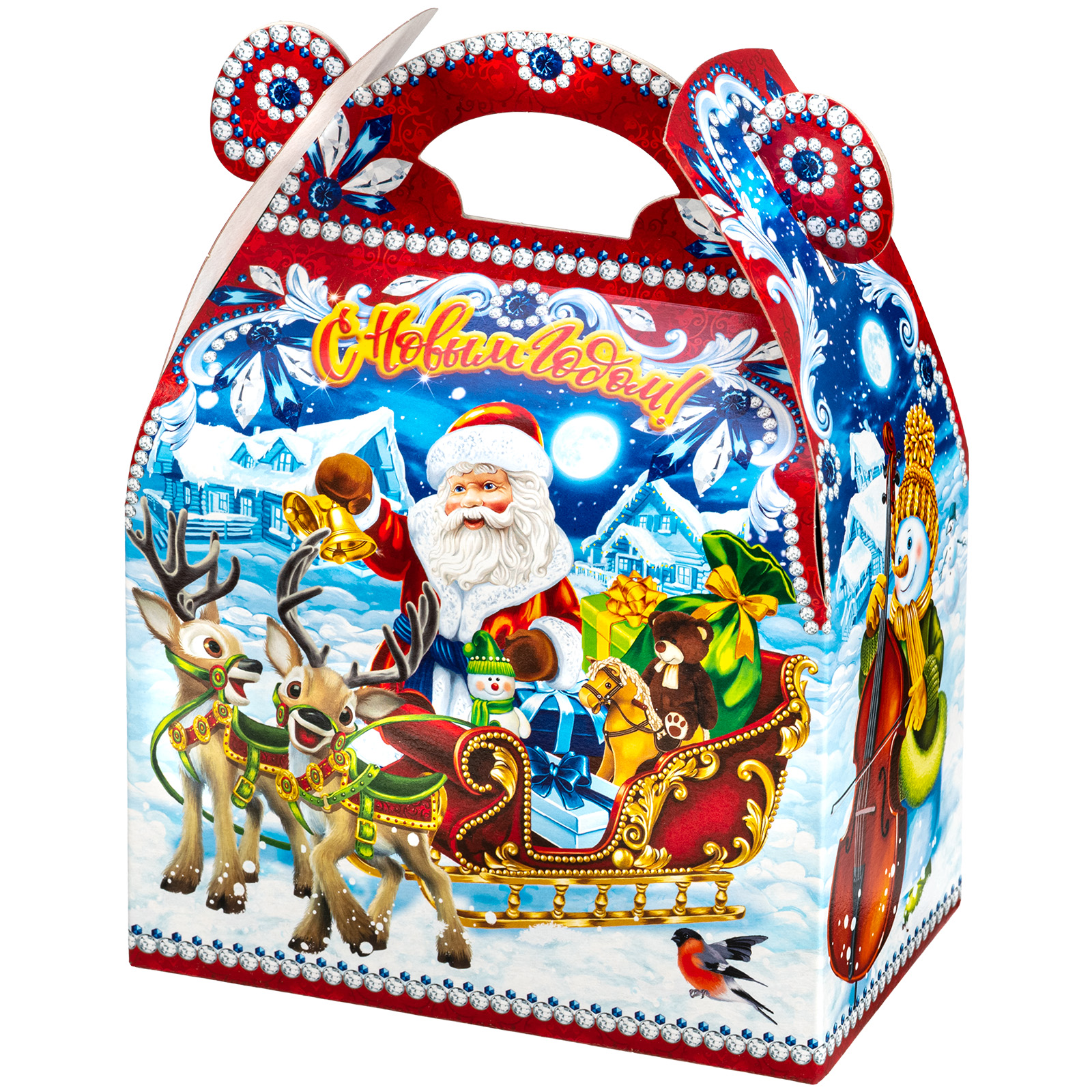 Самый популярный способ поздравить детей и взрослых с Новым годом – купить для них сладкие подарки в картонной упаковке. Плотные и прочные коробки разной формы вмещают до килограмма сладостей. Их поверхность украшается узорами и рисунками на новогоднюю тематику, что создает ощущение праздника и атмосферу ожидания чуда.